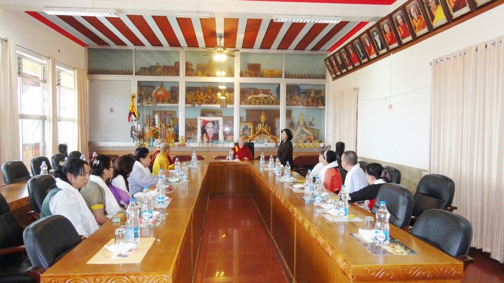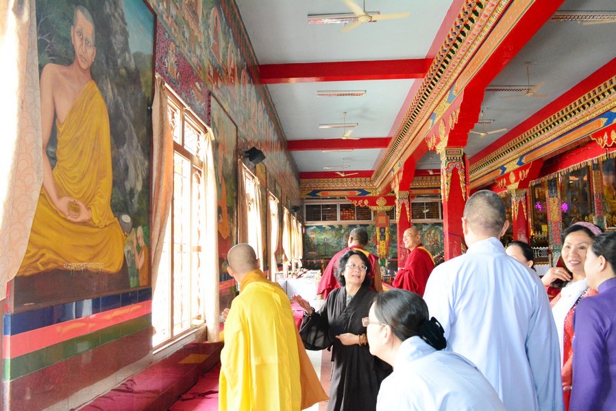 Phật tử tu tập ở Bồ Đề Đạo Tràng về Đại Học Phật Học SeraMey, làm lễ