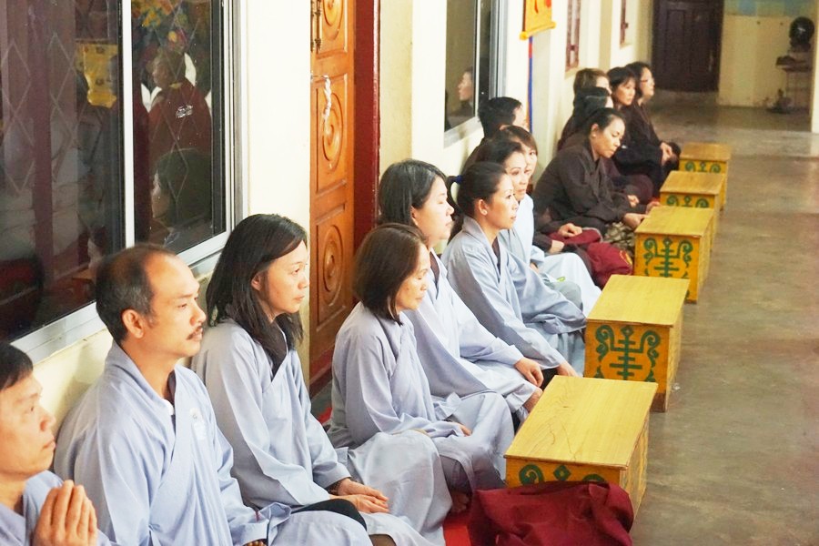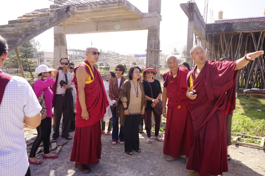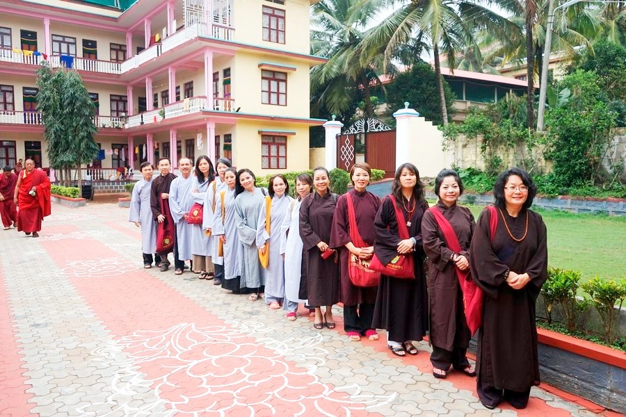 Phật tử tu tập ở Bồ Đề Đạo Tràng về Đại Học Phật Học SeraMey, làm lễ