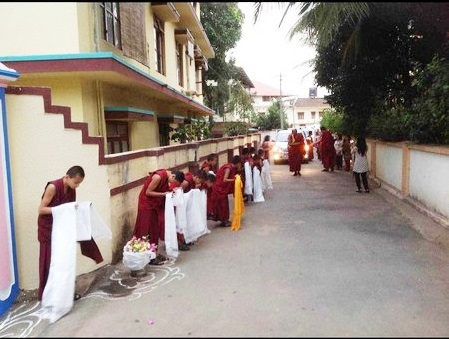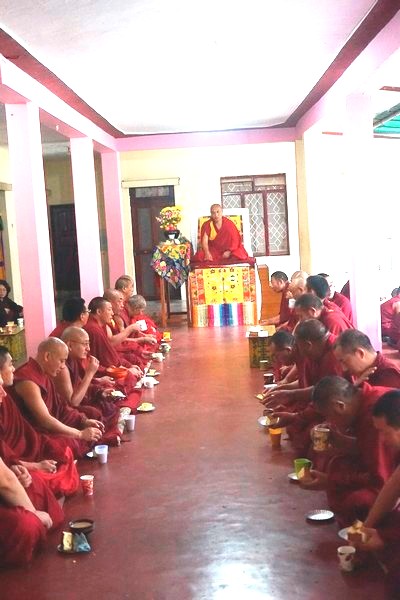 Cúng dường trai tăng trong lễ khánh thành Pobhor Khamtsen ở SeraMey