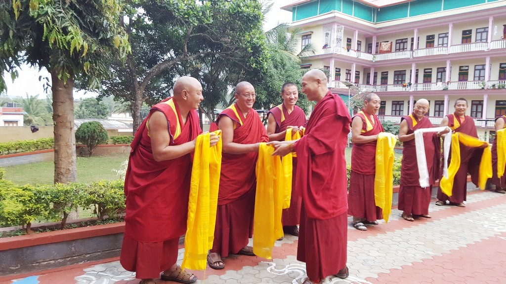 chúc mừng năm đệ tử lãnh bằng cấp Tiến Sĩ Phật Học Geshe Lharampa.