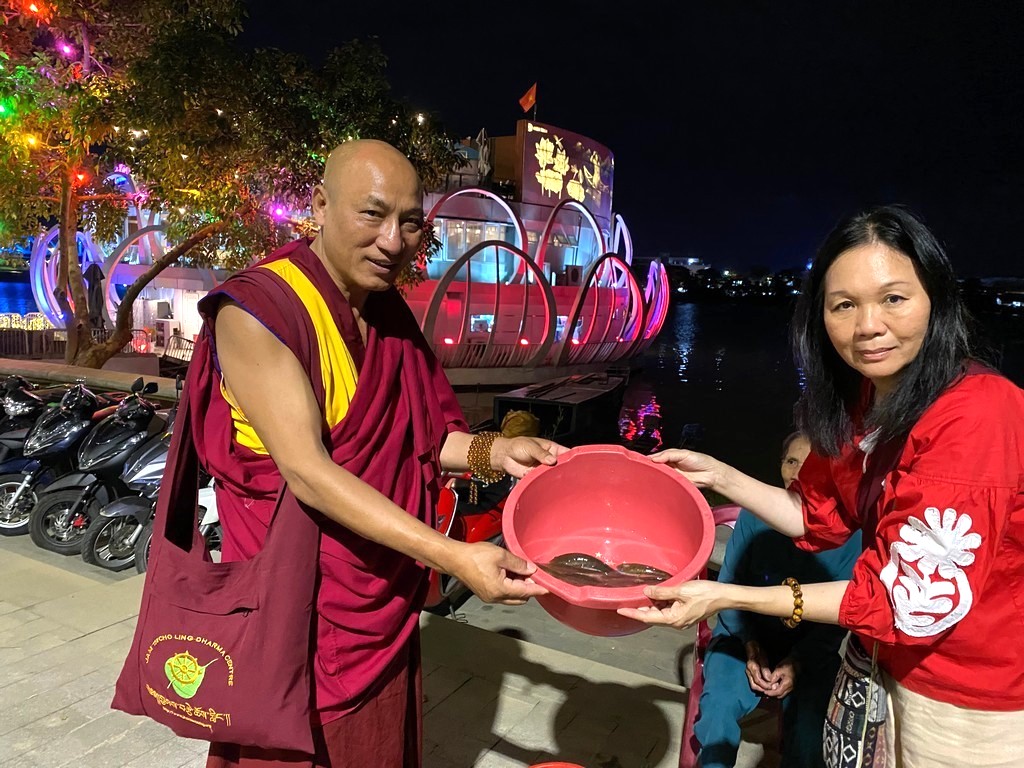 Ngài dành thì giờ để sinh hoạt với các đệ tử và một số Phật tử ở