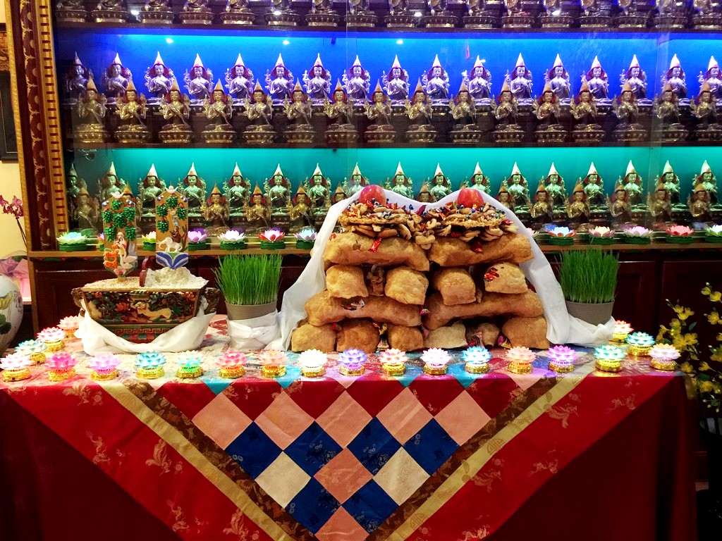 Tibetan buddhists prepared traditional offerings for