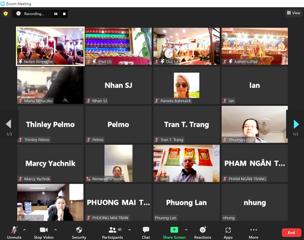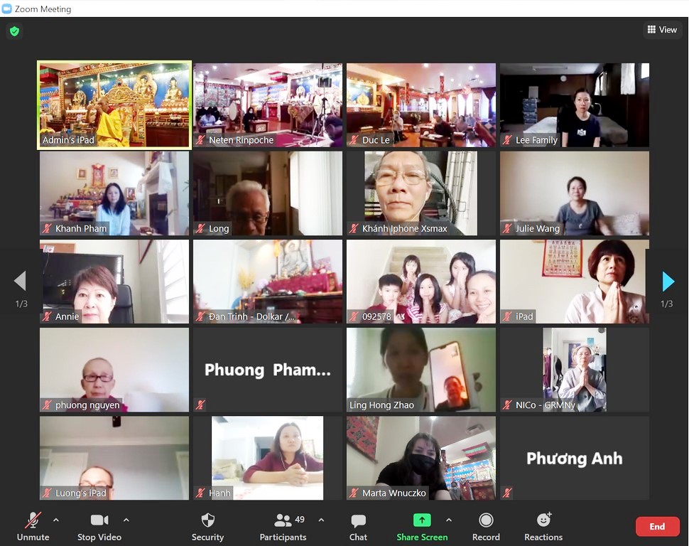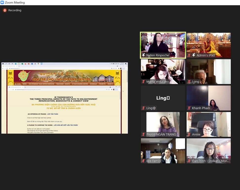 Viện Phật Học Jam Tse Cho Ling và Trực Tuyến qua Zoom.