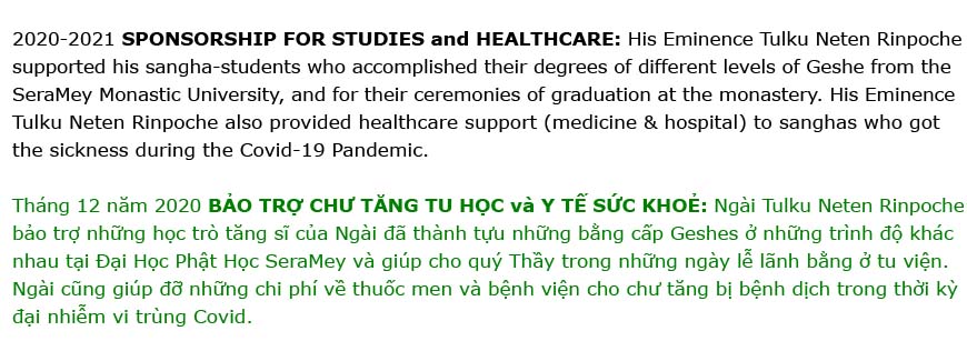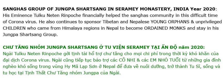 Neten Rinpoche gởi tịnh tài hổ trợ chư tăng cho mọi chi phí trong thời kỳ khó khăn của