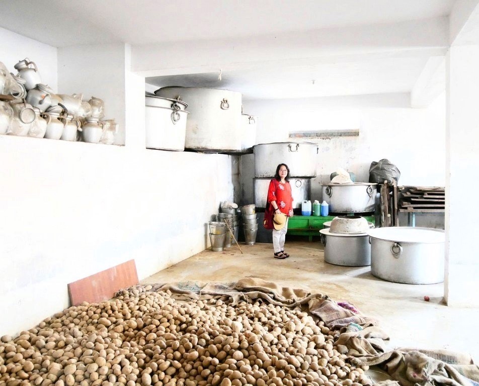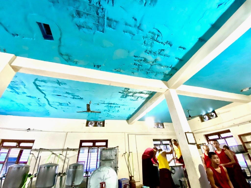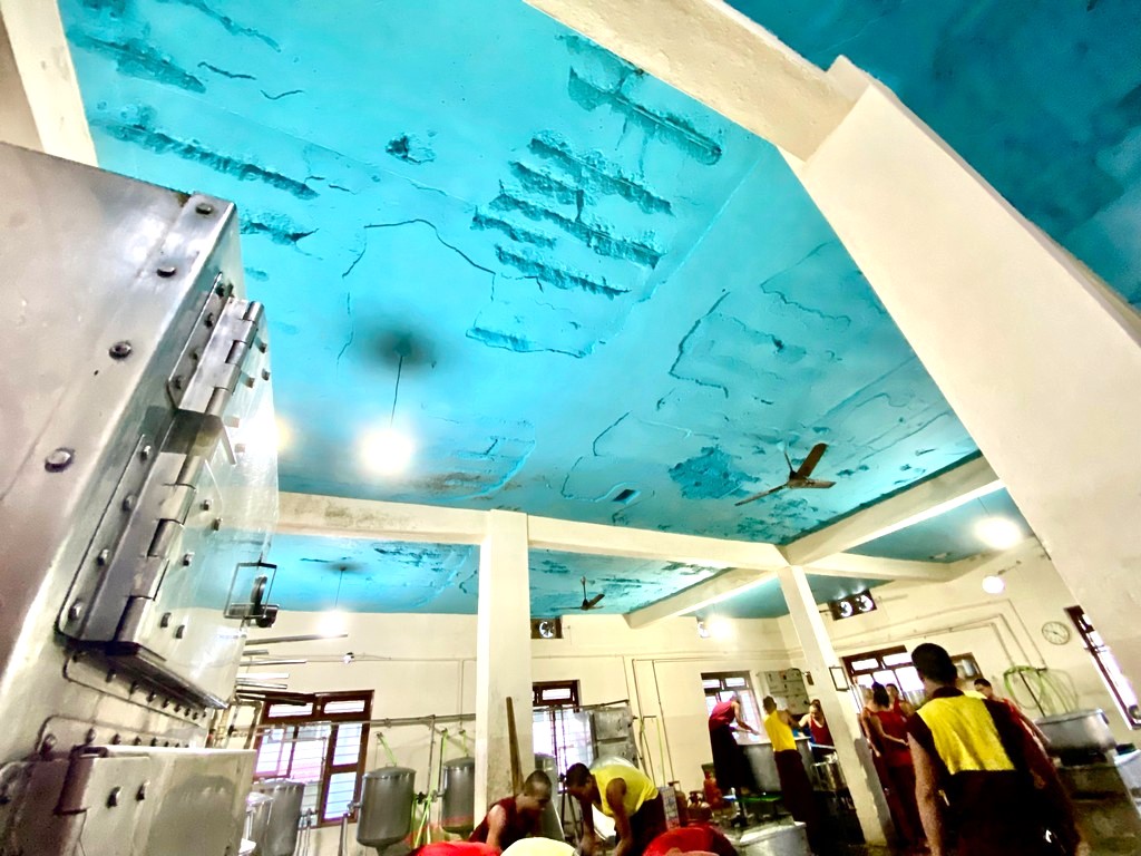 việc nấu ăn của chư tăng để cung cấp thực phẩm hằng ngày cho hàng ngàn chư tăng trong tu viện và cũng mang lại sự an toàn cho quý Thầy vì hiện tại đã có nhiều phần ở trần nhà, tường