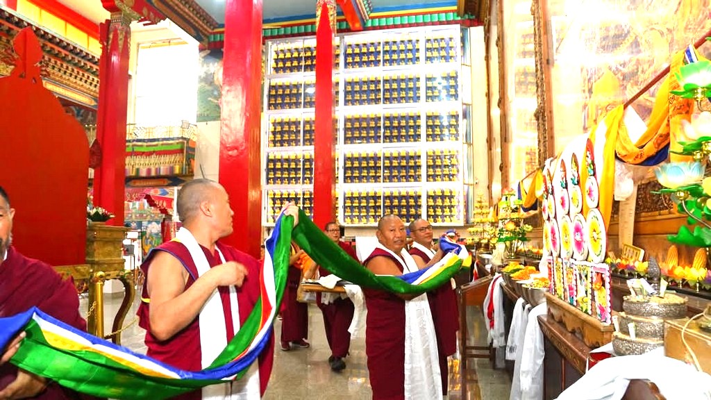 Ngày 21 tháng 5 năm 2025 Ngày Cát Tường: Ngài Viện Trưởng Tu Viện SeraMey Khen Rinpoche Neten Tulku và chư tăng làm một khóa Lễ Cầu Nguyện đặc biệt