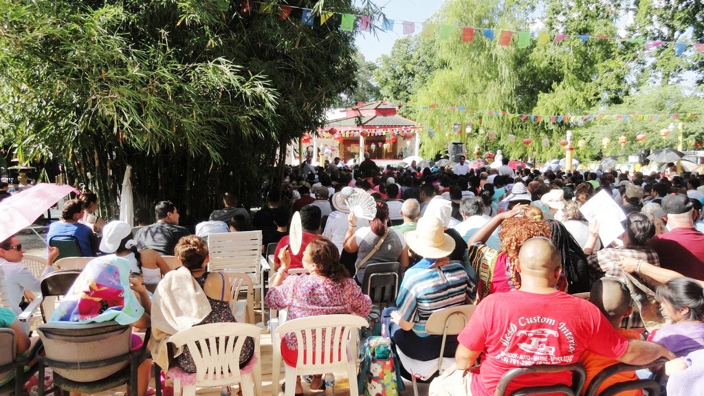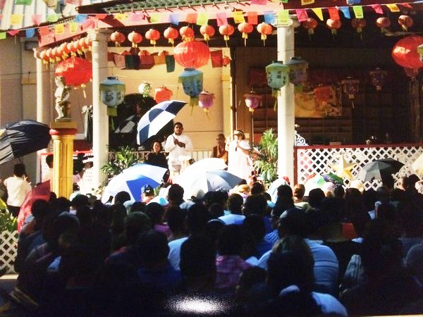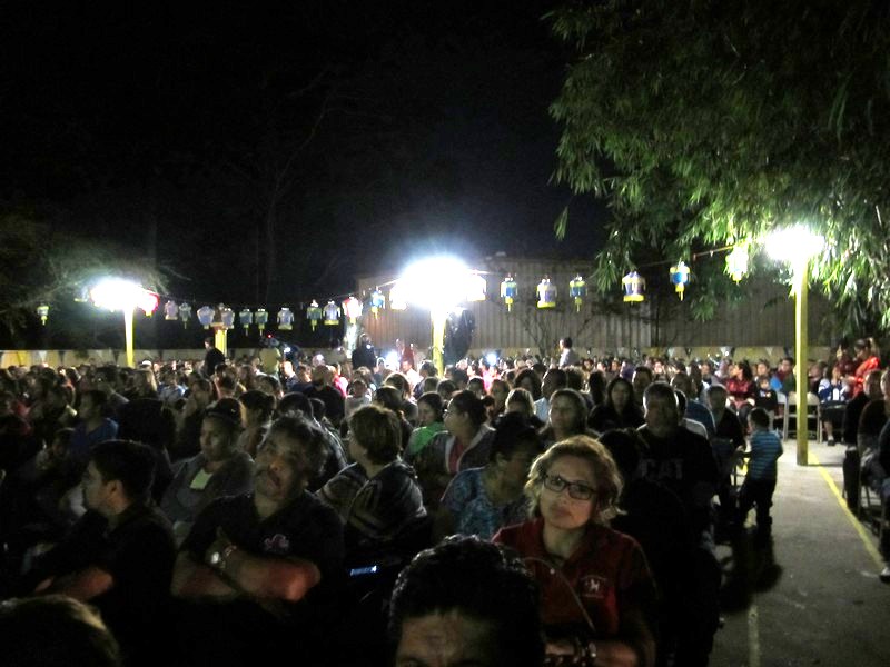 Public talk to the Hispanic-Latino Americans and other communities in a rainy day.