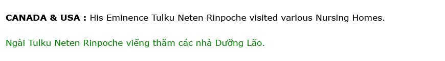His Eminence Tulku Neten Rinpoche visited various Nursing Homes