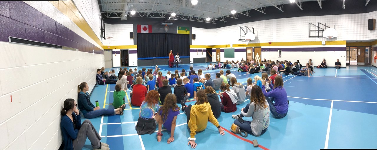 to talk to young students of the Vanscoy Elementary School