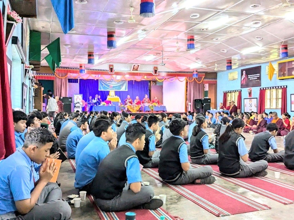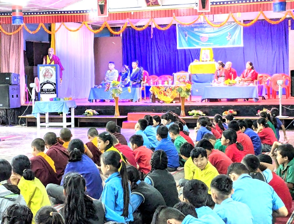 gave teachings to students of the Tibetan School in Bylakuppe,