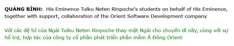 Rinpoche thay mặt Ngài cho chuyến đi nầy, cùng với sự hổ trợ, hợp tác của công ty cổ phần phát triển phần mềm Á Đông Orient
