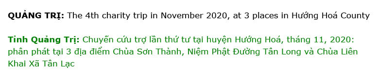 trợ lần thứ tư tại huyện Hướng Hoá Tỉnh Quảng Trị, tháng 11,