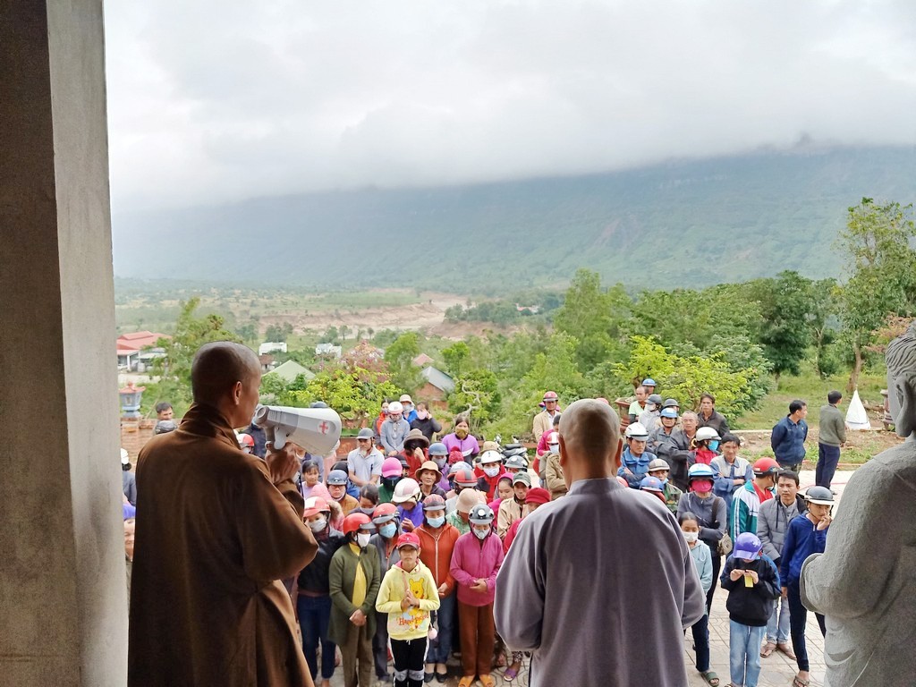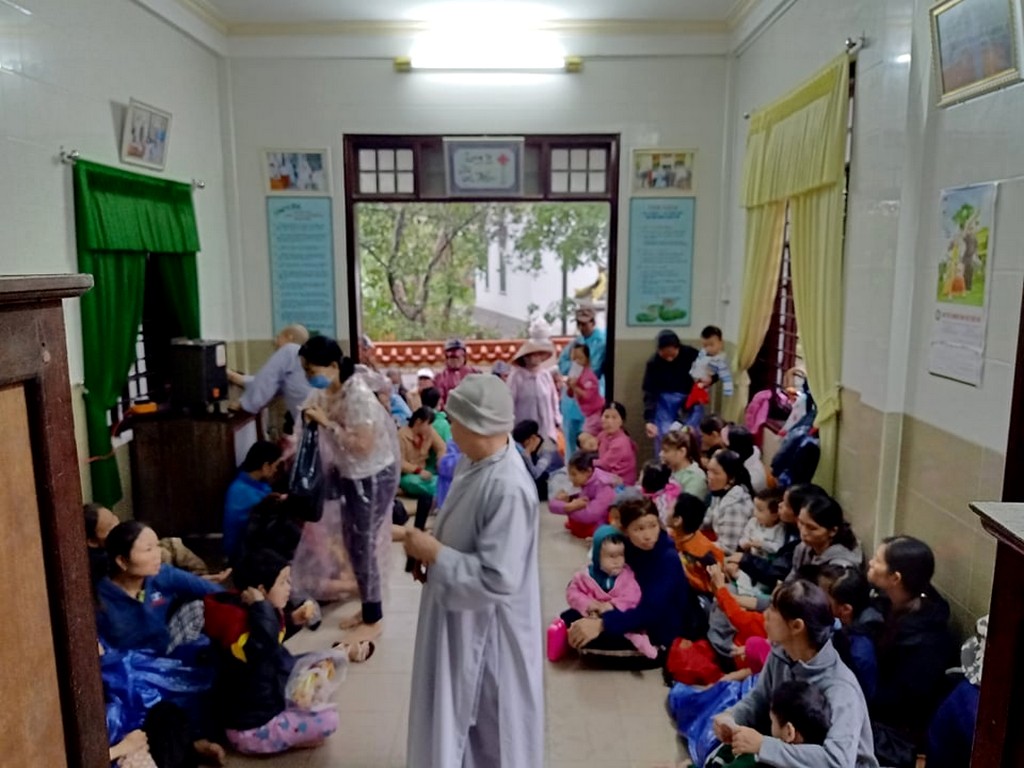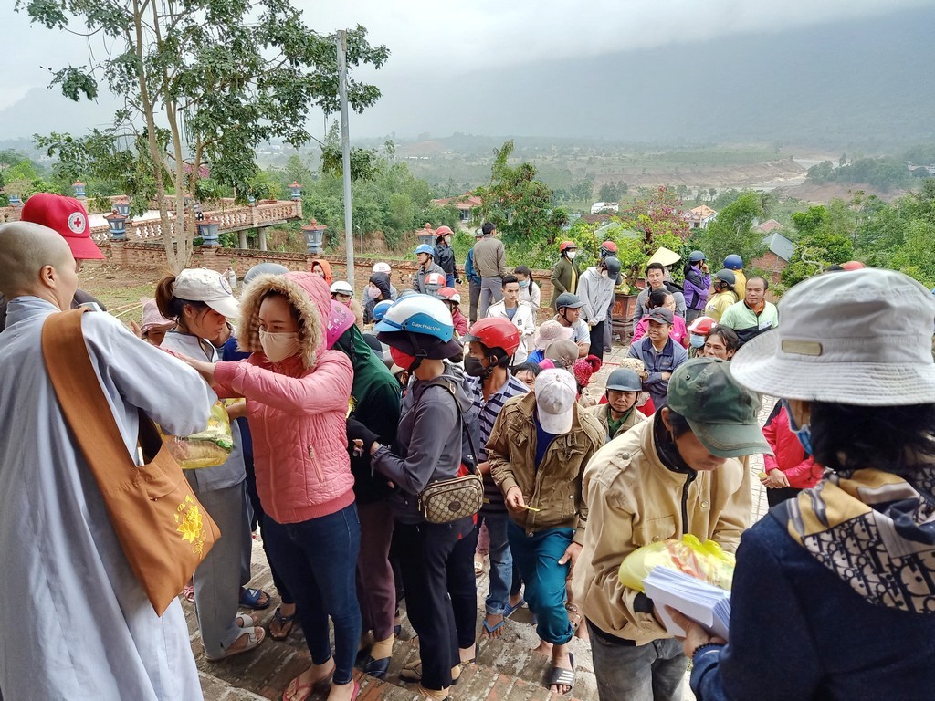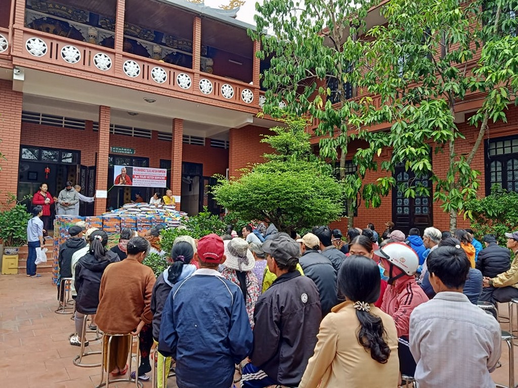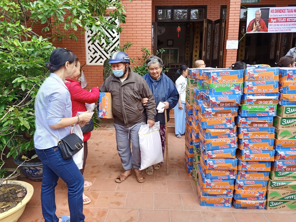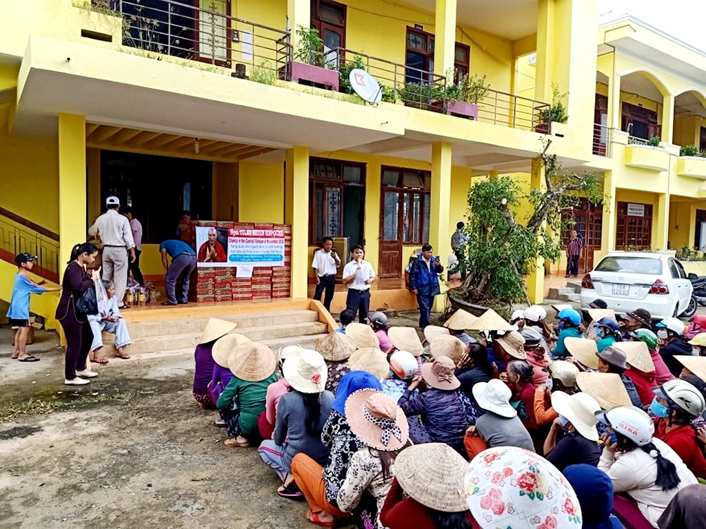 Thay mặt Ngài, các phật tử và đệ tử thiện nguyện đến vùng bị