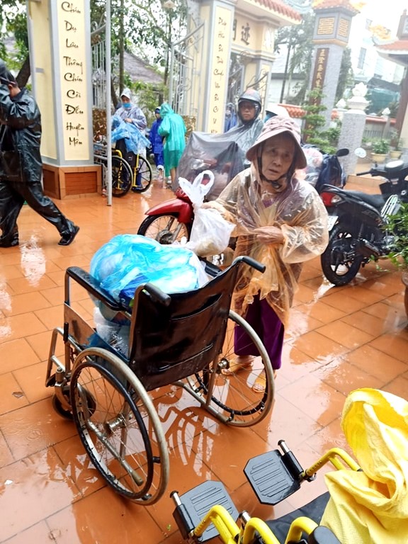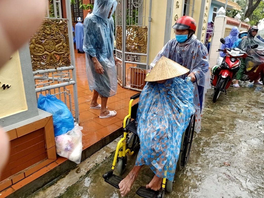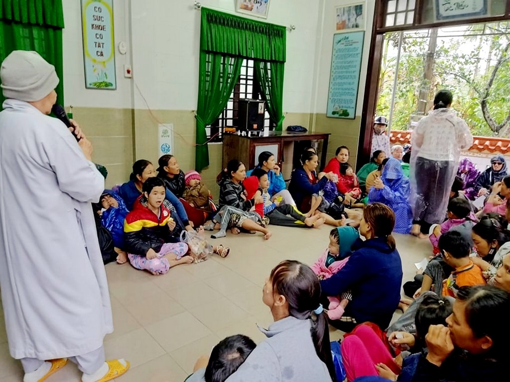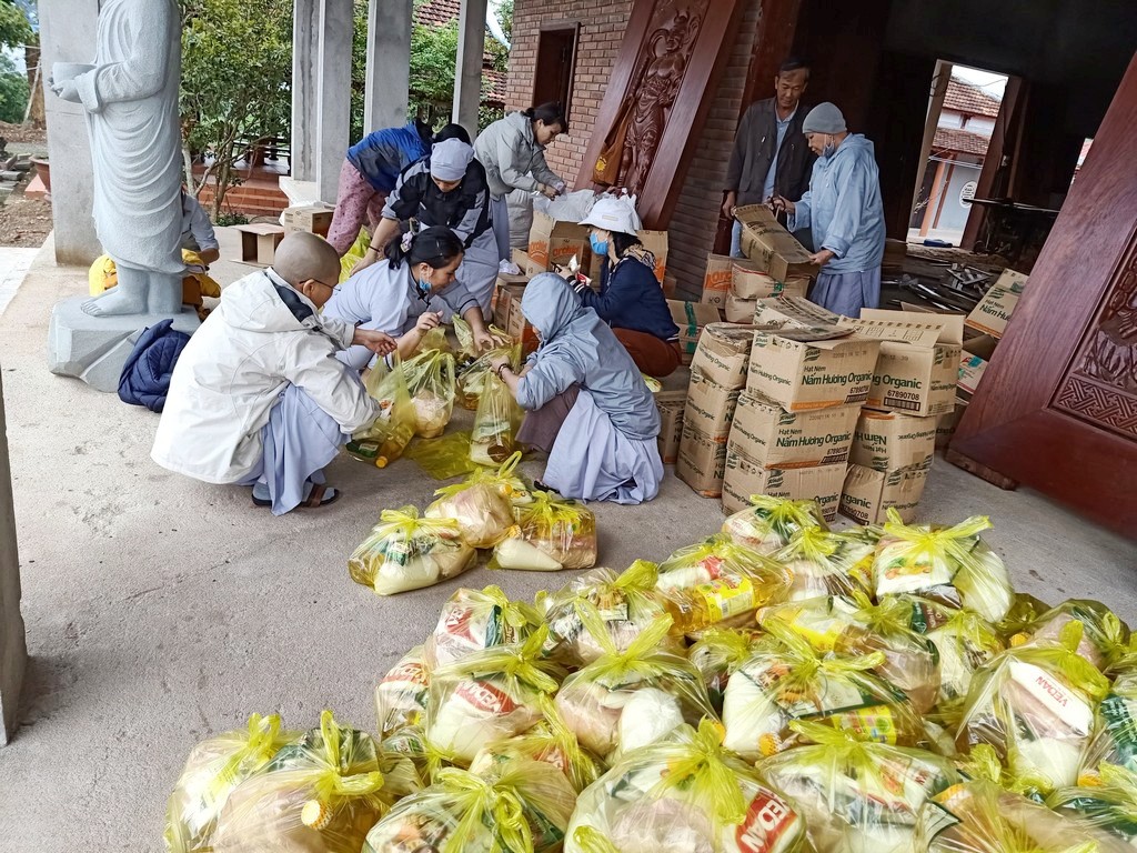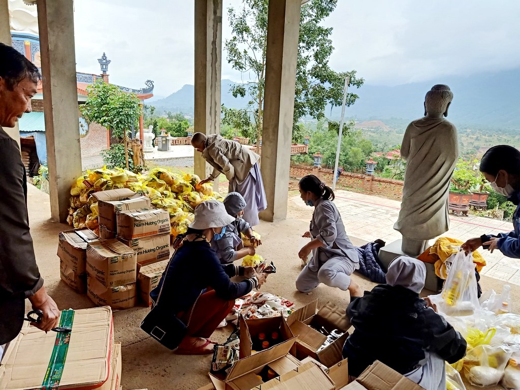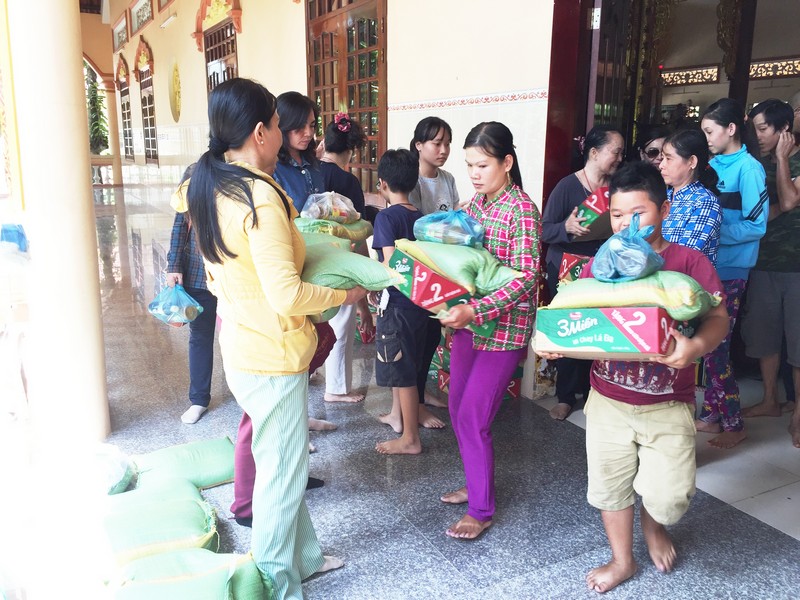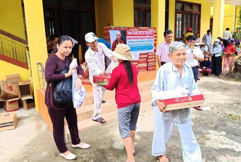 Thay mặt Ngài, các phật tử và đệ tử thiện nguyện đến vùng bị