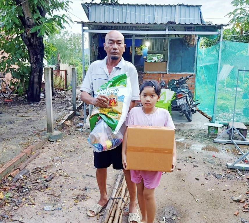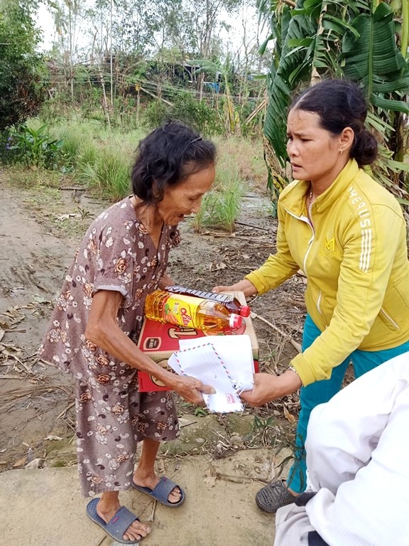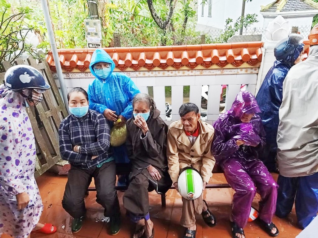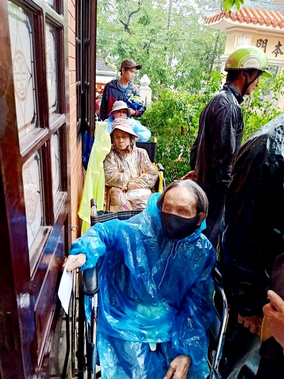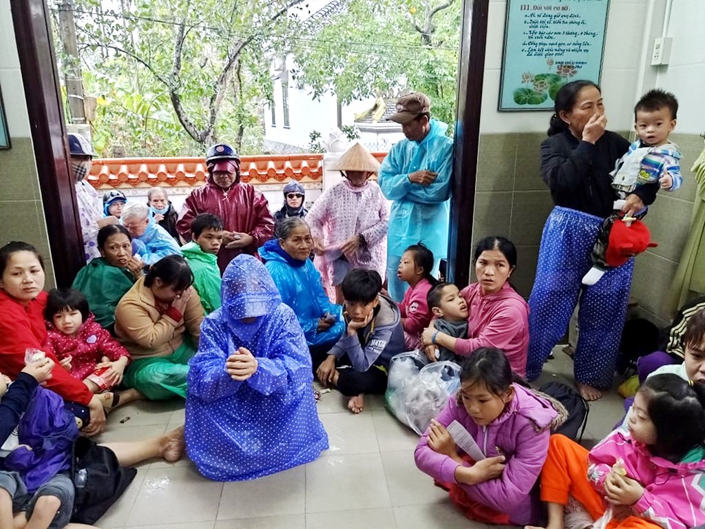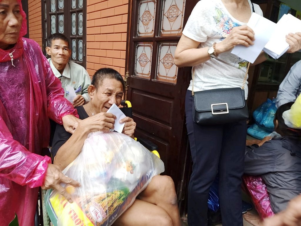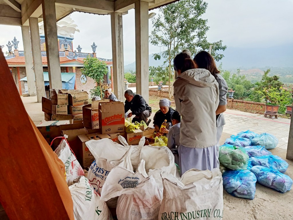 Thay mặt Ngài, các phật tử và đệ tử thiện nguyện đến vùng bị