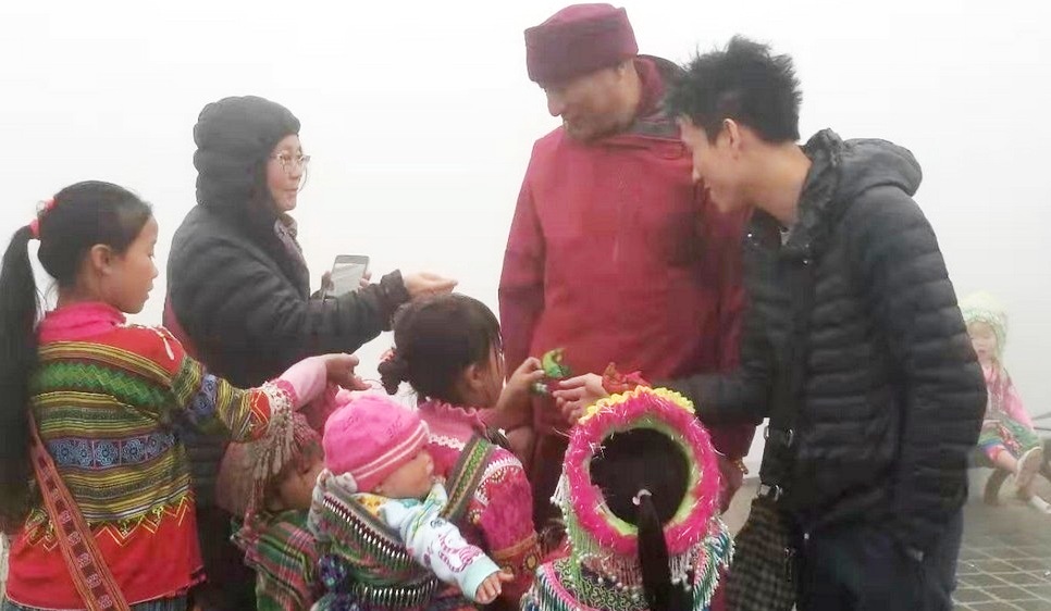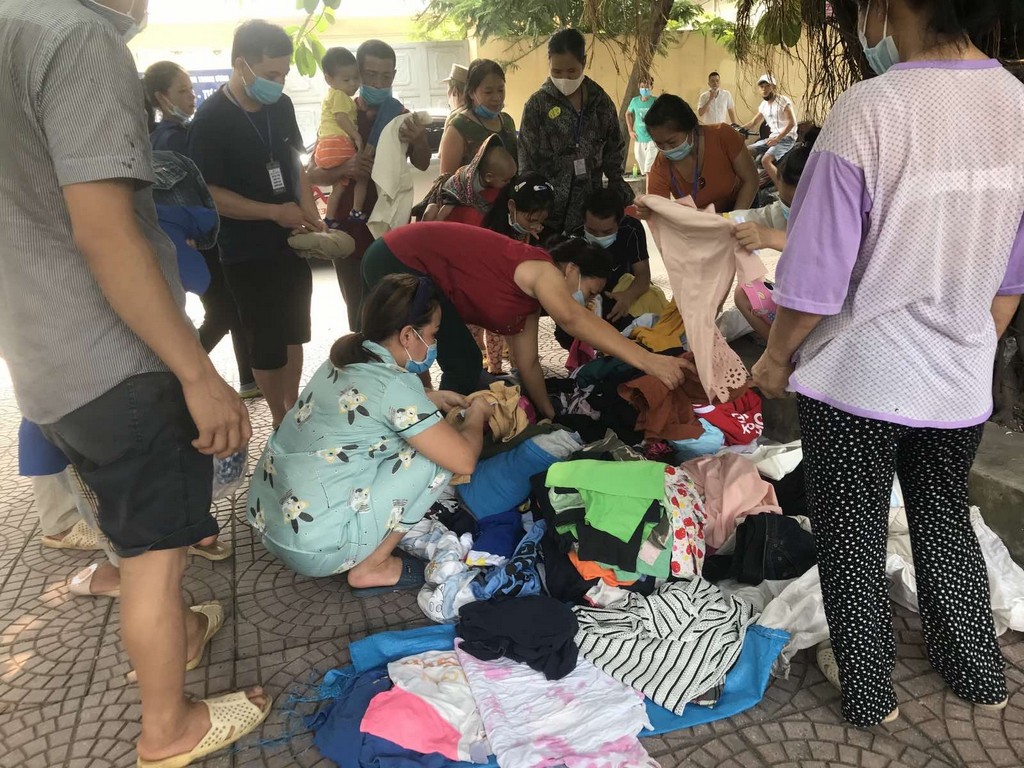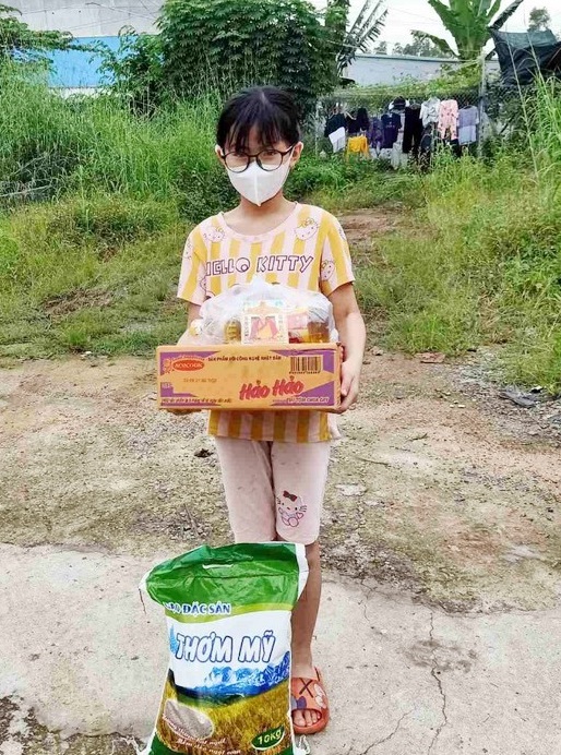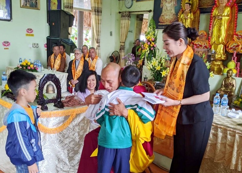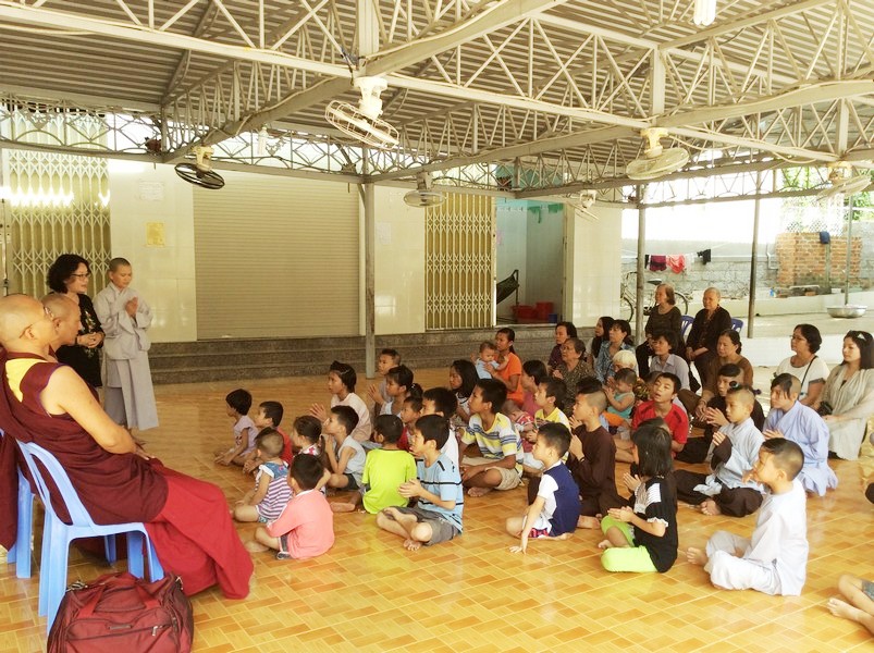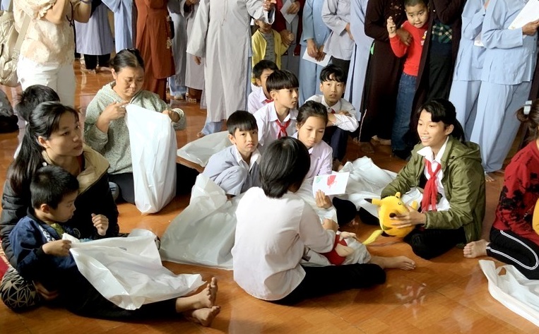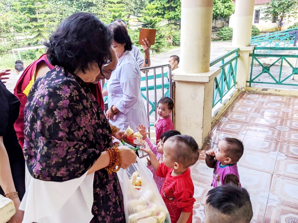 Nhi Đồng ở Việt Nam qua sự giúp đỡ phân phát lương thực và quần áo từ các phật tử và đệ tử