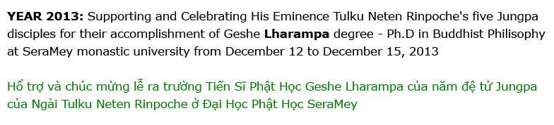của Ngài Tulku Neten Rinpoche ở Sera Lachi và Đại Học Phật Học