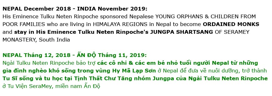 Neten Rinpoche sponsored Nepalese YOUNG ORPHANS & CHILDREN