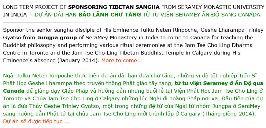 DỰ ÁN DÀI HẠN BẢO LÃNH CHƯ TĂNG TỪ TU VIỆN SERAMEY ẤN ĐỘ SANG CANADA
