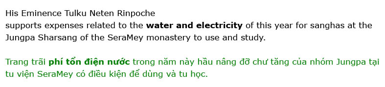trãi phí tổn điện nước trong năm này hầu nâng đỡ chư tăng của