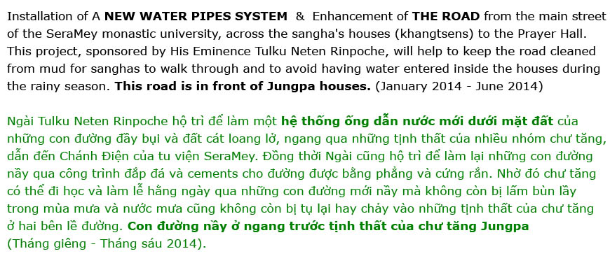 PIPES SYSTEM & Enhancement of THE ROAD from the main street of the SeraMey monastic university, across the sangha's