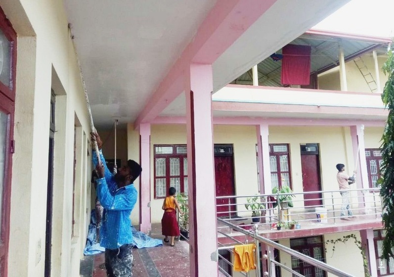 để sơn lại những tịnh thất của chư tăng thuộc nhóm Jungpa ở tu