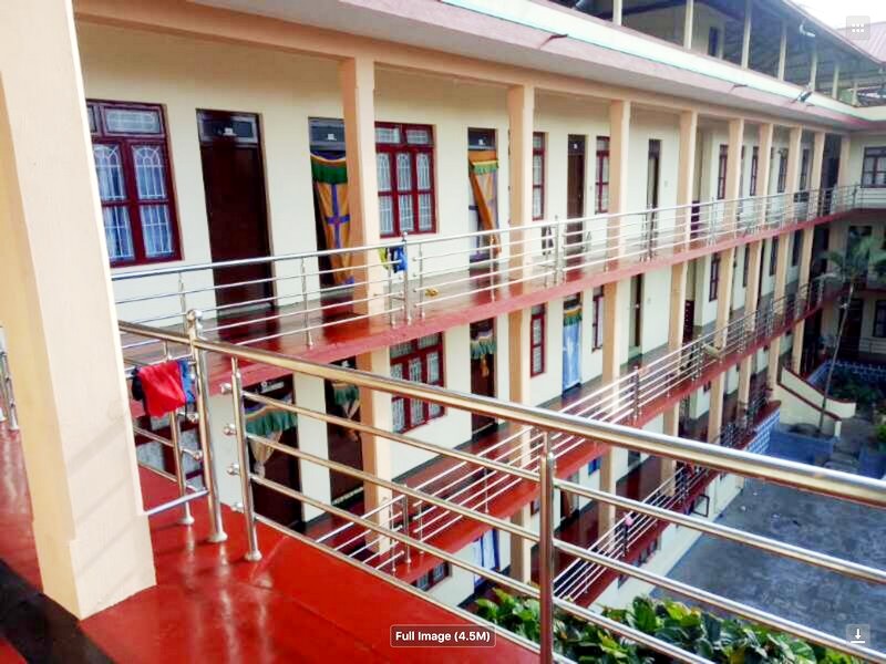 BA DÃY HÀNG RÀO DÀI VỮNG CHẮC cho ba tầng lầu ở tịnh thất của chư tăng Jungpa tại tu viện SeraMey