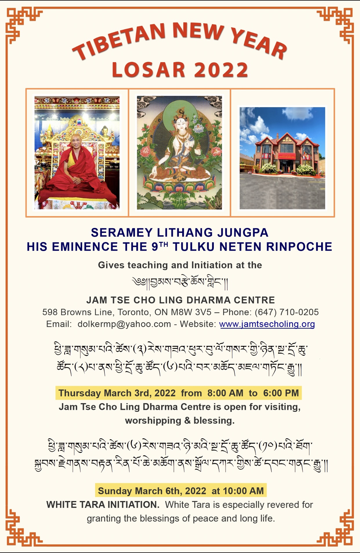HOLIDAY: There is NO ACTIVITY at the Jam Tse Cho Ling Dharma Centre in Toronto