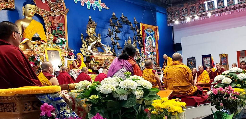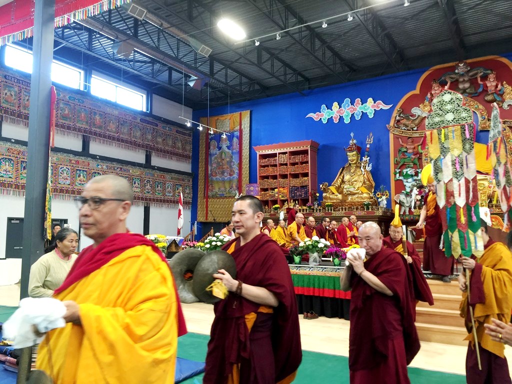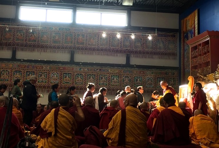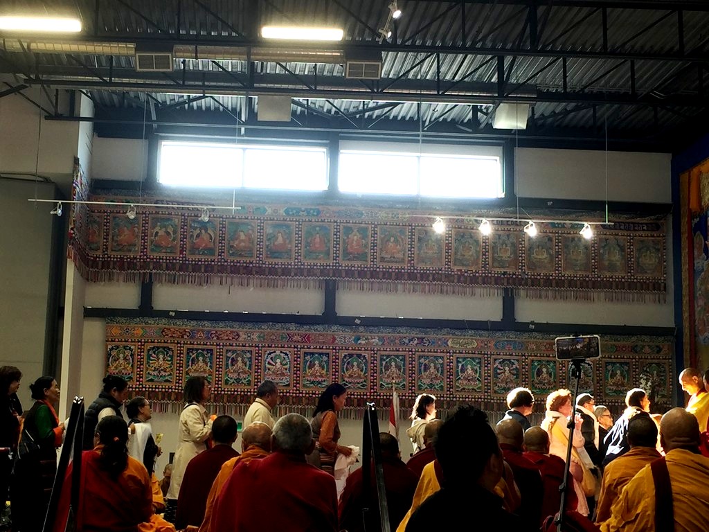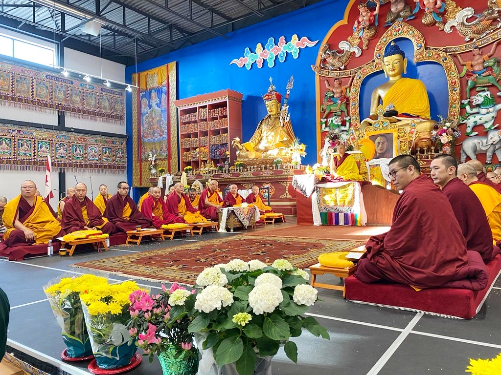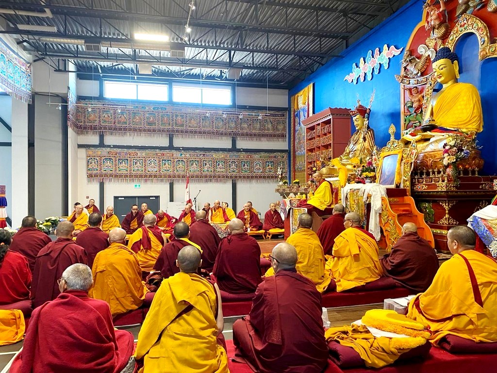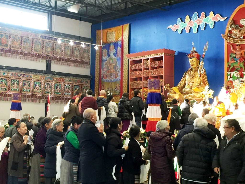 together with sanghas of Gelugpa lineage and buddhists pray at the Tibetan-Canadian Cultural Centre in Toronto.