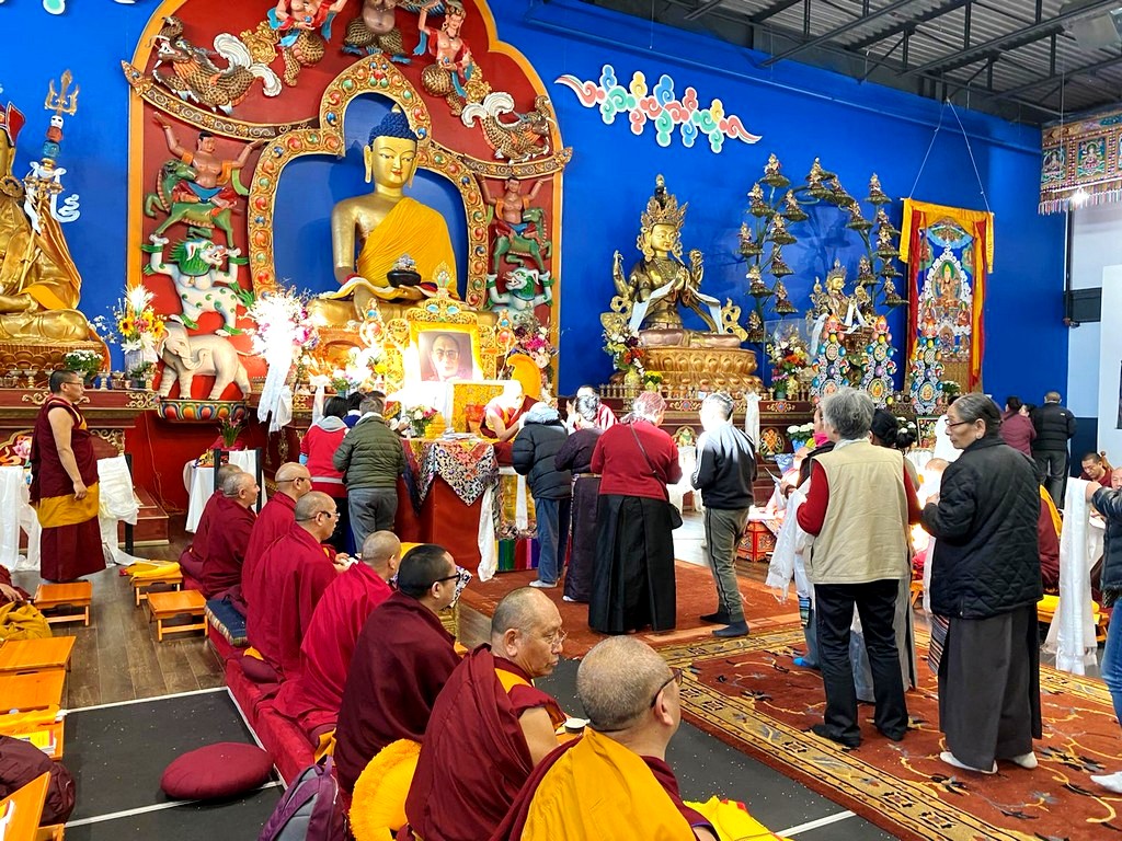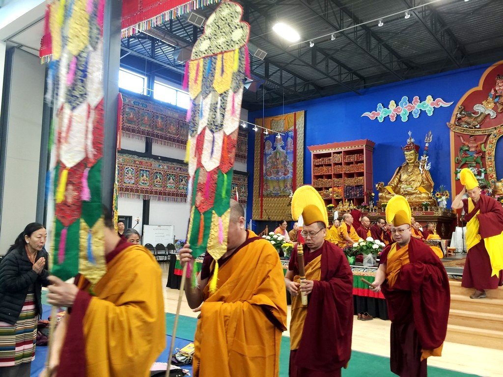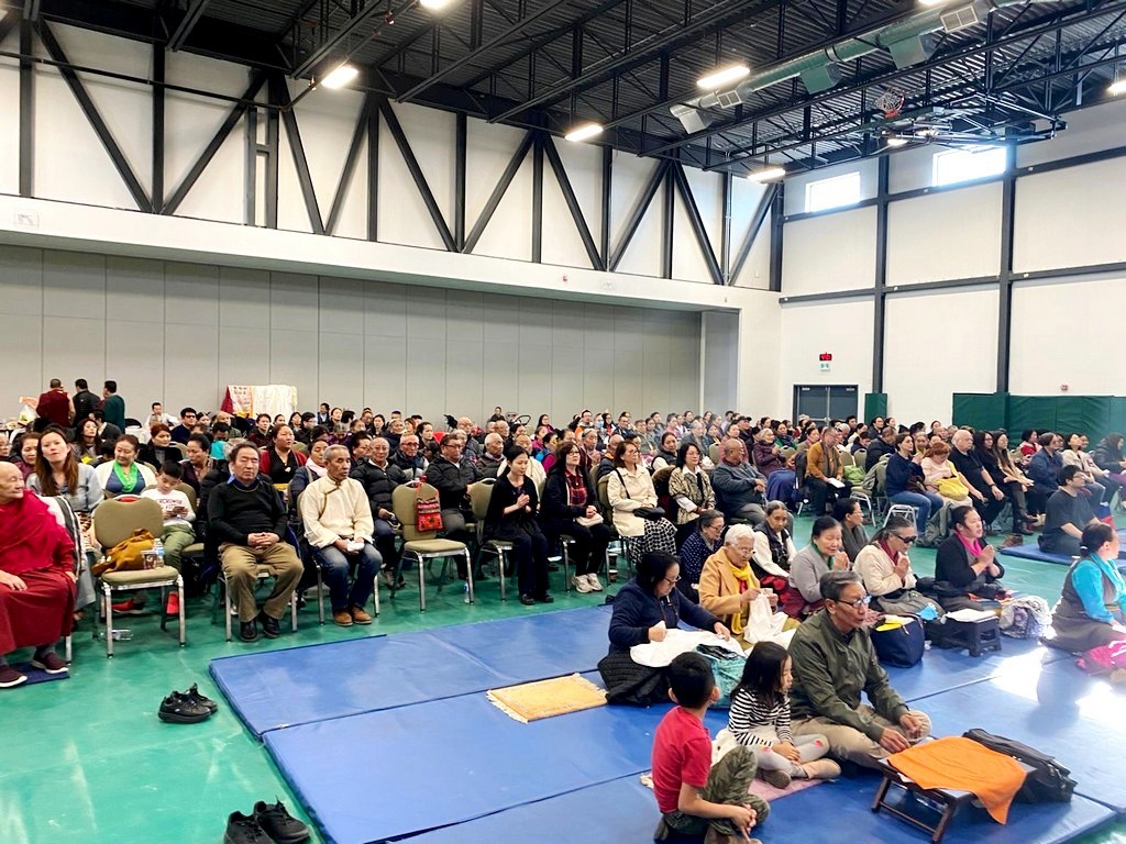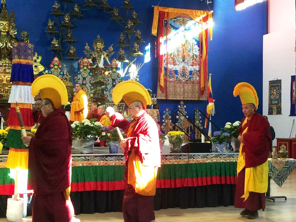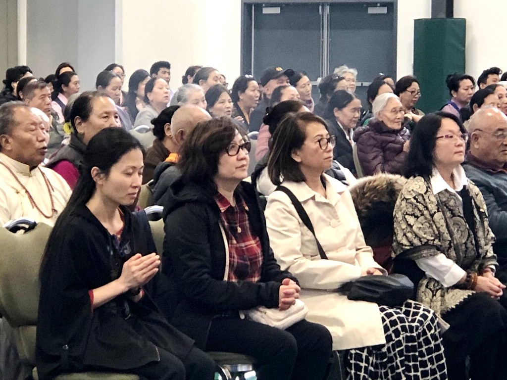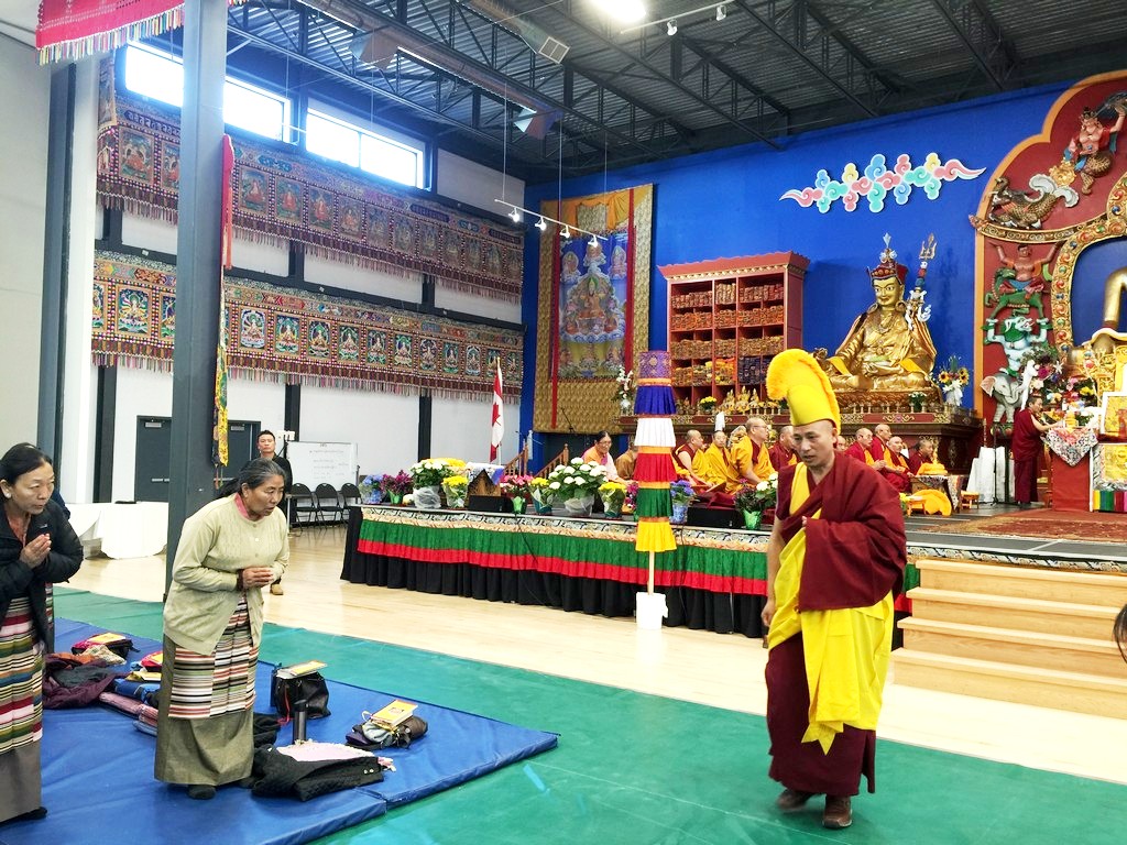 together with sanghas of Gelugpa lineage and buddhists pray at the Tibetan-Canadian Cultural Centre in Toronto.