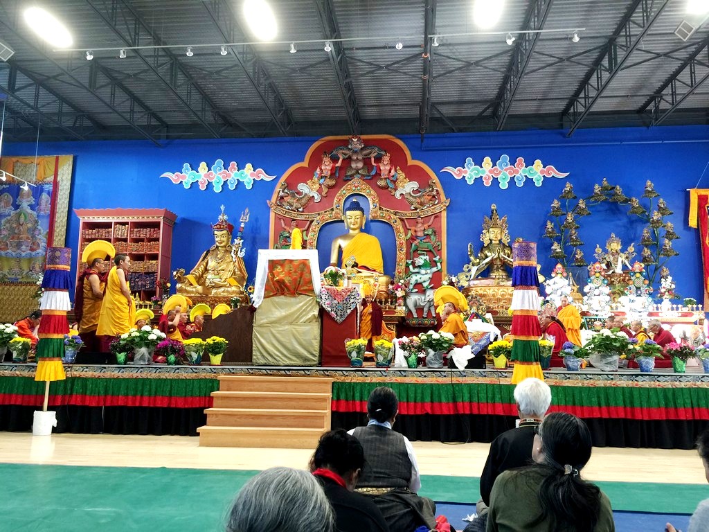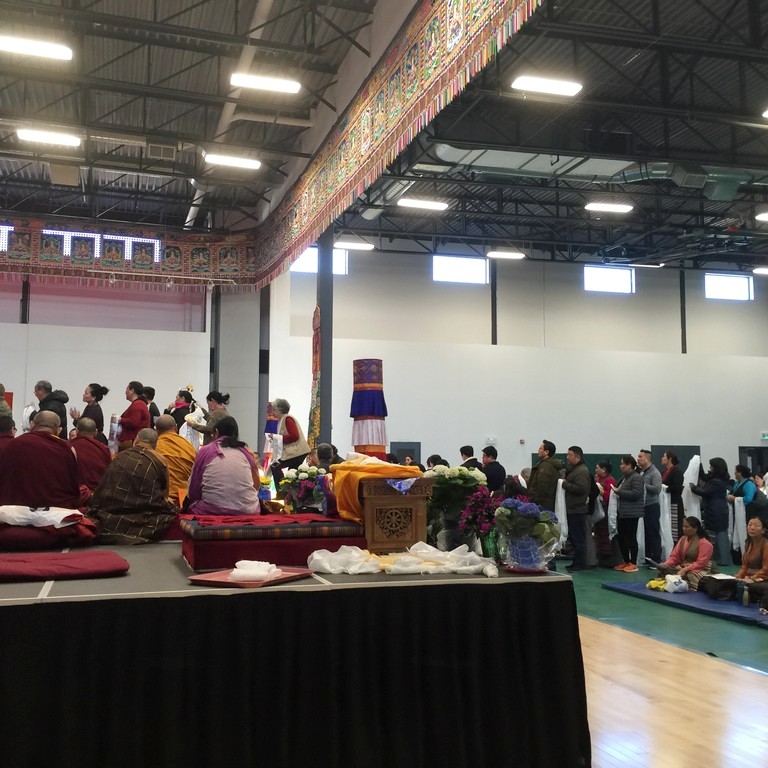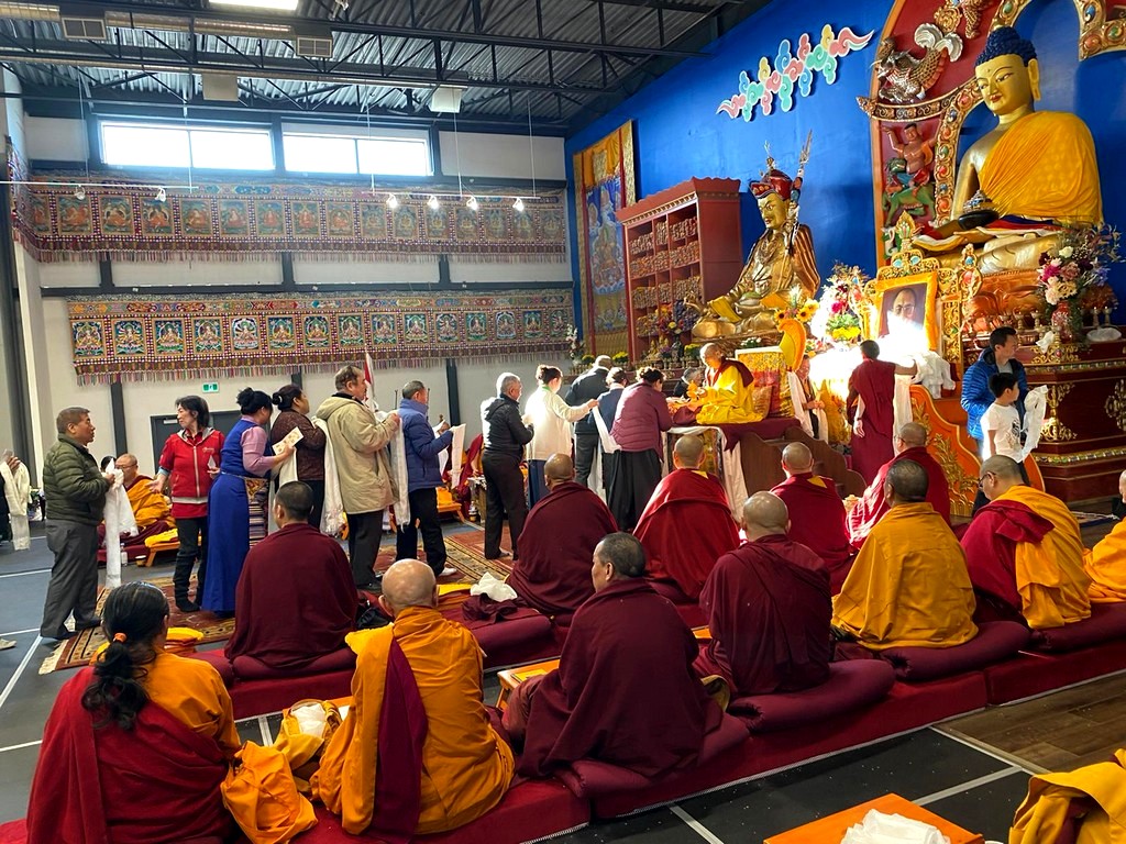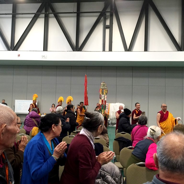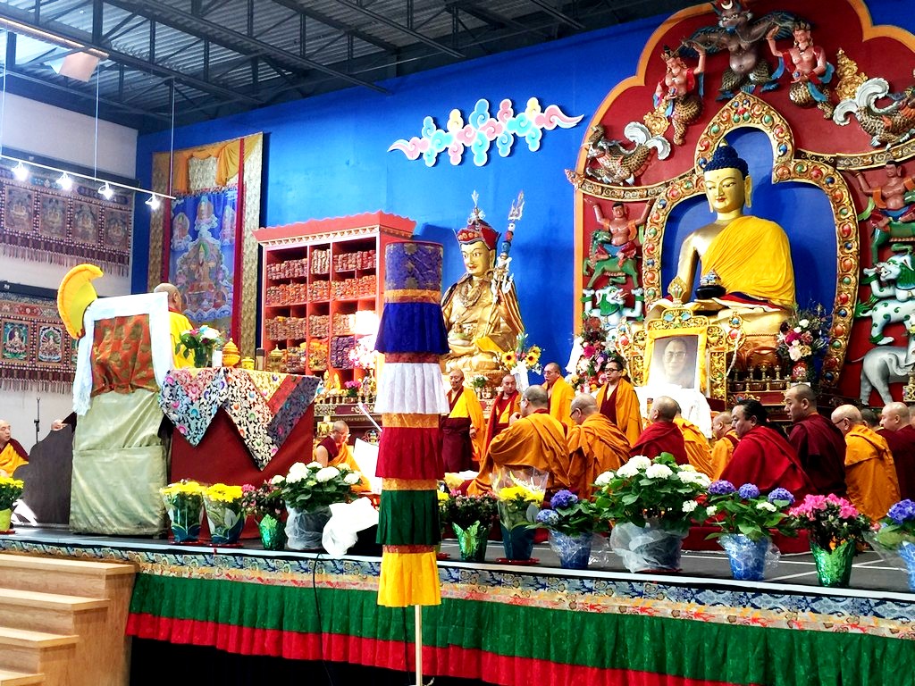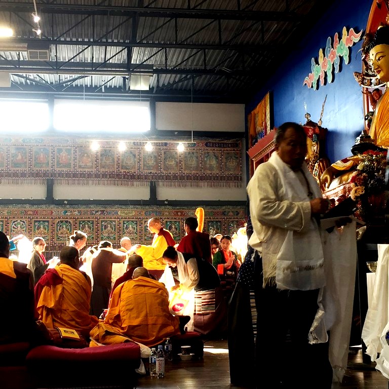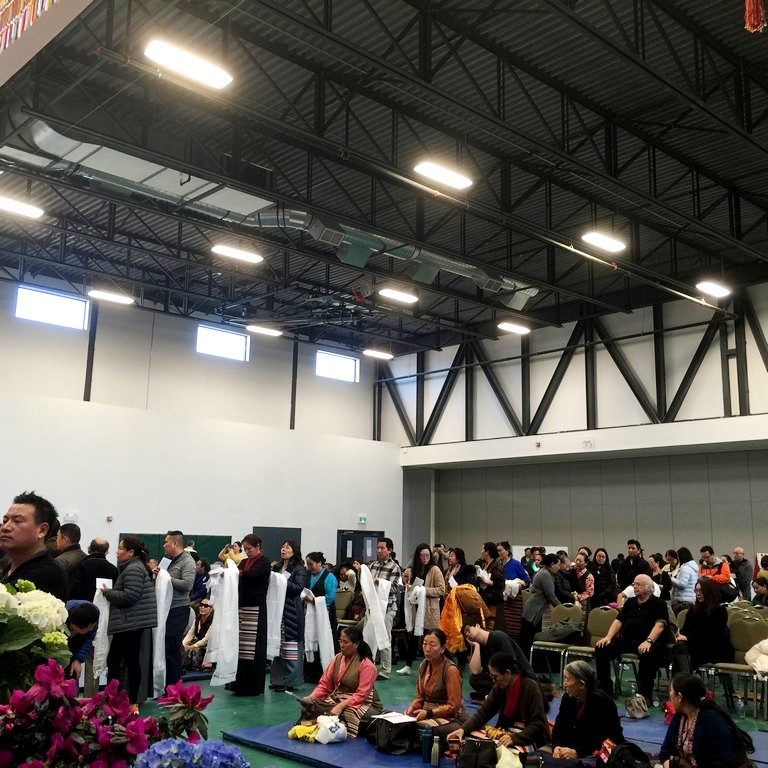 together with sanghas of Gelugpa lineage and buddhists pray at the Tibetan-Canadian Cultural Centre in Toronto.