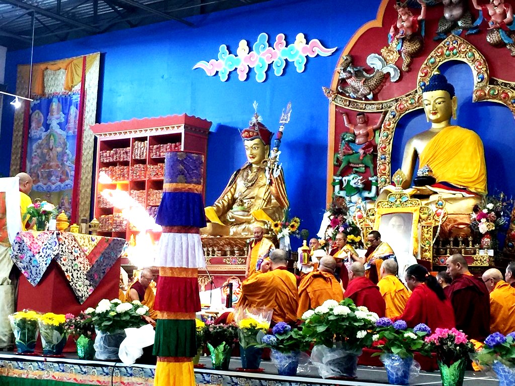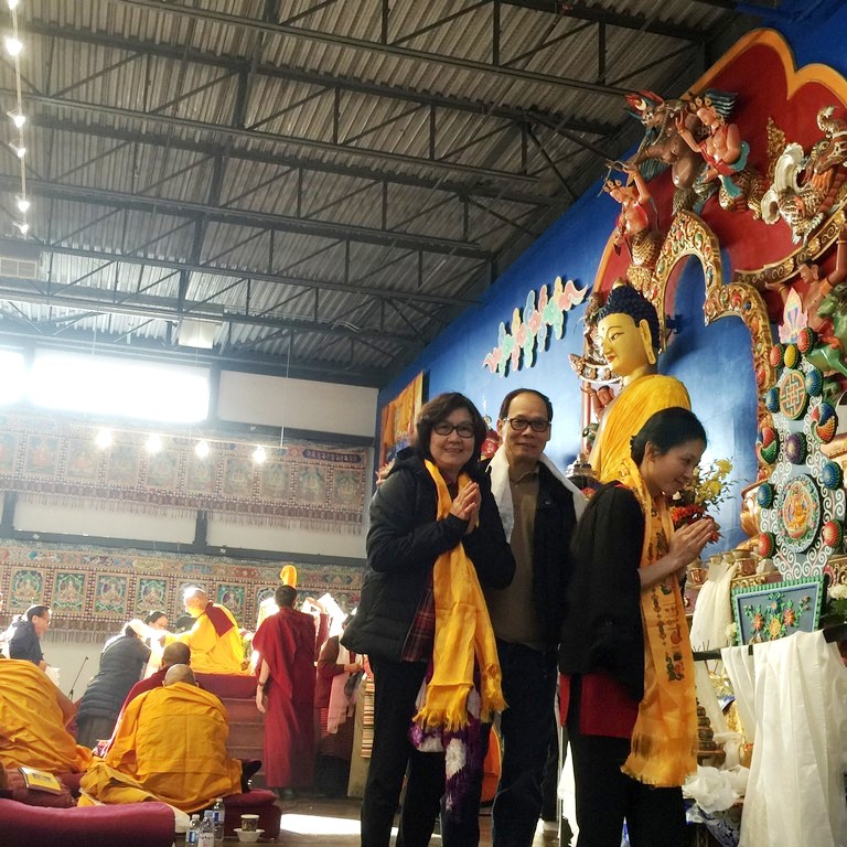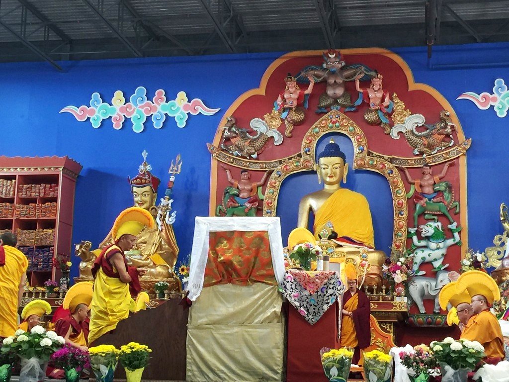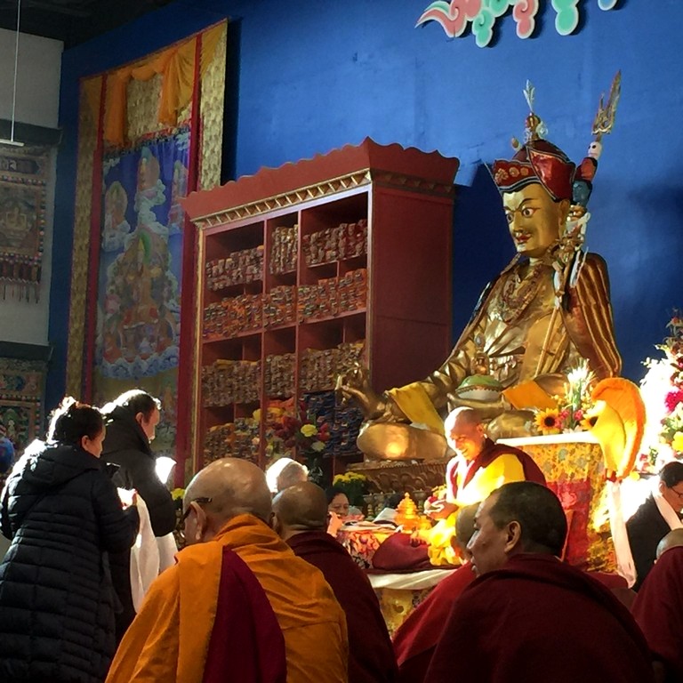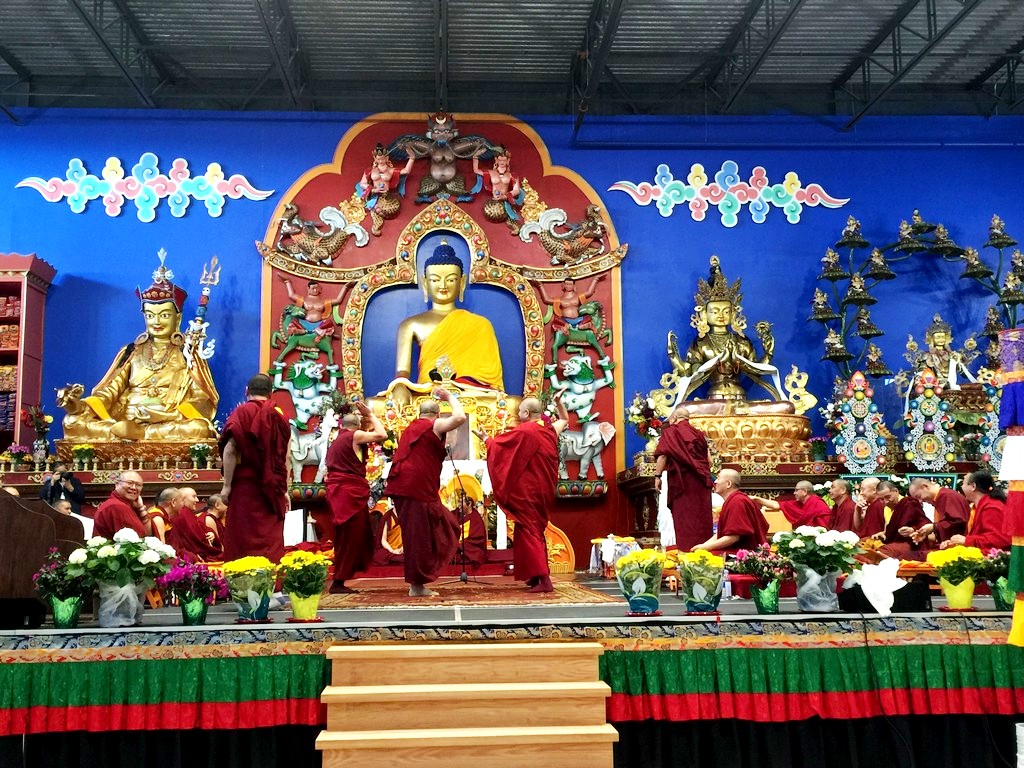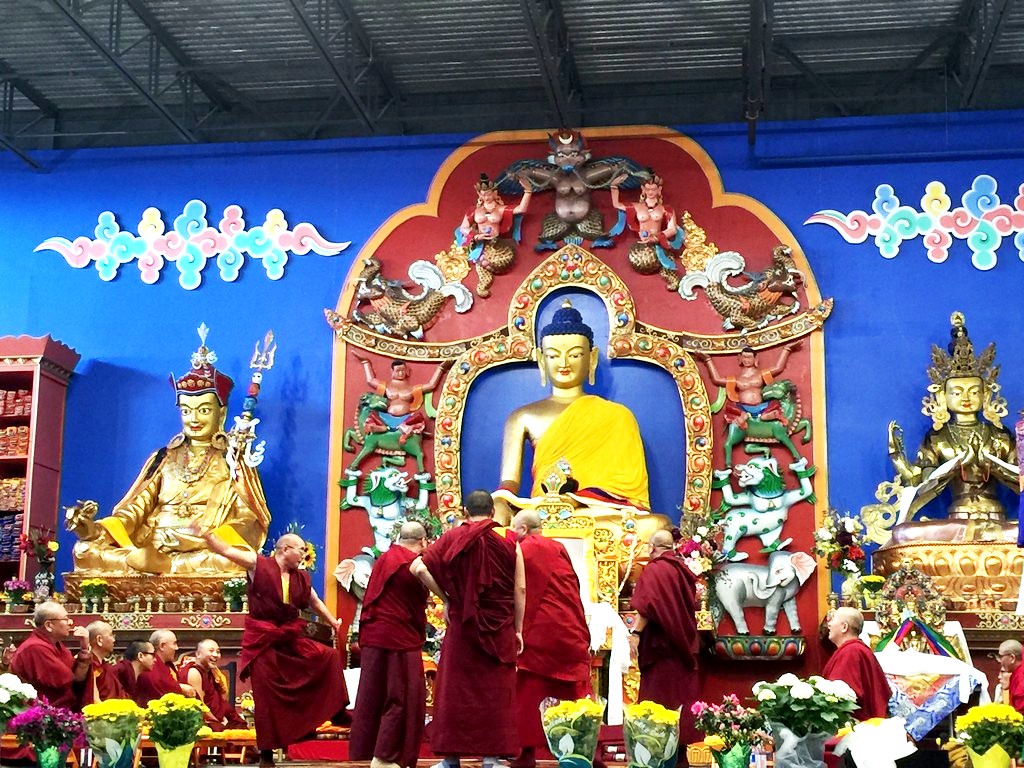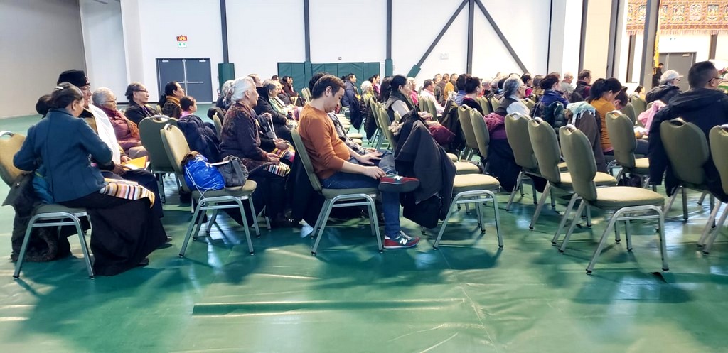 together with sanghas of Gelugpa lineage and buddhists pray at the Tibetan-Canadian Cultural Centre in Toronto.