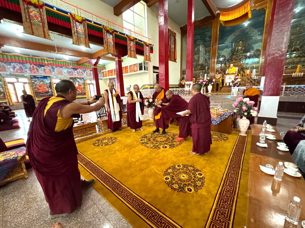 EMINENCE TULKU NETEN RINPOCHE GAVE ADVICE & GIFTS TO GESHES LHARAMPA SANGHAS AND DISCIPLES WHO HAVE ACCOMPLISHED THEIR DEGREES OF Ph.D IN SUTRA STUDIES