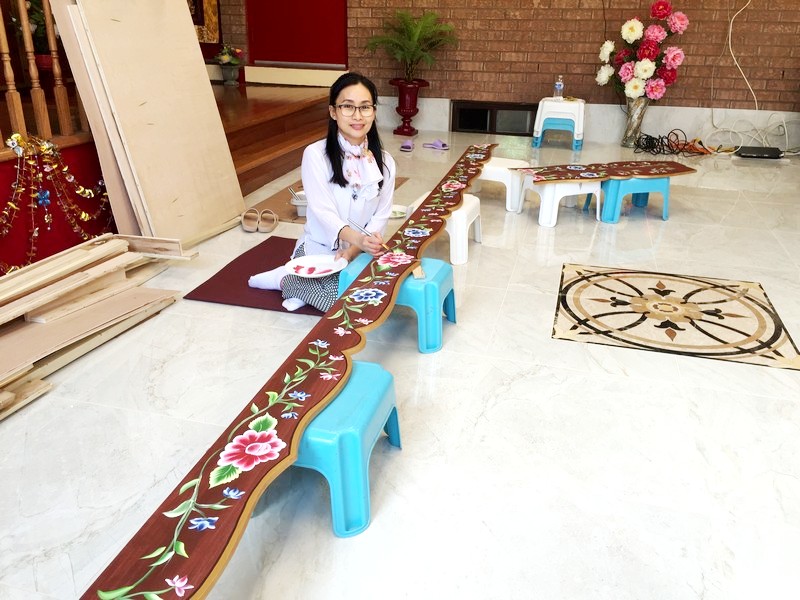 VIỆN PHẬT HỌC JAM TSE CHO LING (VẼ HOA TRÊN GỖ CHO CÁC TỦ THỜ